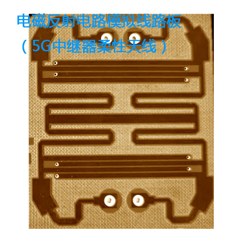 基于常規(guī)柔性線路板制造工藝,內(nèi)部線路模擬電磁反射電路,應(yīng)用于5G天線,5G天線可設(shè)計成單面、雙層、多層多種結(jié)構(gòu)層次形態(tài)。常用于移動通信網(wǎng)絡(luò)中繼器終端設(shè)備。