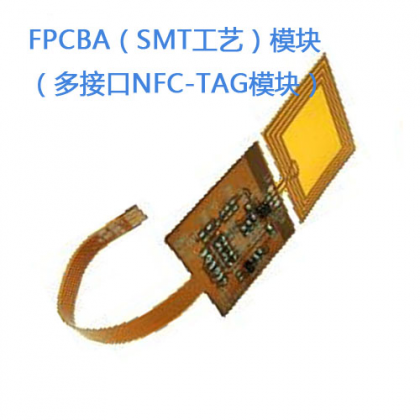 基于柔性線路板制造工藝技術(shù),采用SMT貼裝加工的FPCBA模塊,應(yīng)用于NFC-TAG標(biāo)簽?zāi)K,具有多接口模式,常用于變電...