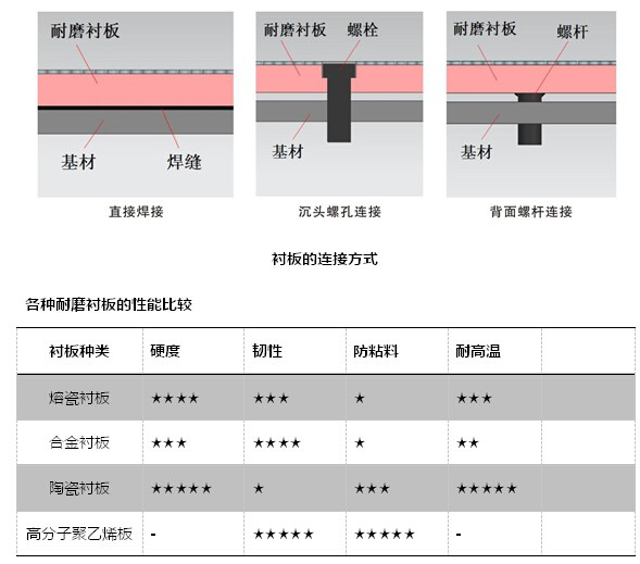 熔瓷襯板所有產品均可焊接,現場切割比較困難,不建議切割!安裝方式可采用:     ①直接焊接②沉孔預制